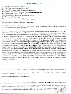 Por todo ellos responsabilizamos al gobierno de Enrique peña nieto al gobierno del estado de Chiapas Manuel Velasco Coello al presidente de las margaritas y a los ejidatarios del ejido miguel hidalgo y por la muerte de la bebe Maria Fernanda Méndez Pérez y de todo lo que nos pueda pasar.
