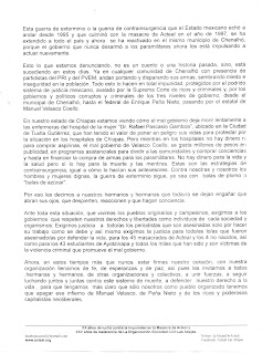 Ahora, en estos tiempos más que nunca, estar firmes nuestro corazón, con nuestra organización llenarnos de fe, de esperanzas y de paz, así pues los invitamos a todos ,hermanas y hermanos, de otras organizaciones y colectivos, a unir fuerzas, a seguir luchando juntos y juntas contra este sistema de muerte, a defender nuestro derecho a la vida , para que tengamos más claro que sólo nosotros como pueblo organizado tenemos que apagar ese infierno de Manuel Velasco, de Peña Nieto y de los ricos y poderosos capitalistas neoliberales.