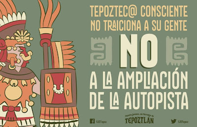 Habitantes del municipo de Tepoztlán pertenecientes a la organización FRENTES UNIDOS EN DEFENSA DE TEPOZTLÁN denuncian a los tres niveles de gobierno, a la Secretaria de Comisiones y transportes (SCT) y la empresa Tradeco porque están preparando una entrada ilegal a su territorio.